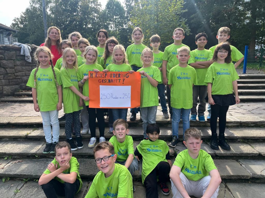 Insgesamt sind alle Kinder der Erik-Nölting Grundschule 2893 Runden gelaufen, das sind 1157 Kilometer. Das ist ungefähr so weit wie von Hattingen nach Rom!
