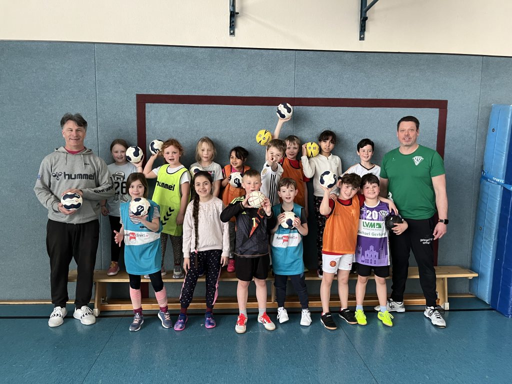 Eine spannende Unterrichtseinheit zum Thema Handball bekamen die Kinder der Klasse 2a heute im Sportunterricht von Jörn Uhrmeister, von der Fakultät für Sportwissenschaften der Universität Bochum und Matthias Kilfitt, von der DJK Westfalia Welper, geboten.
